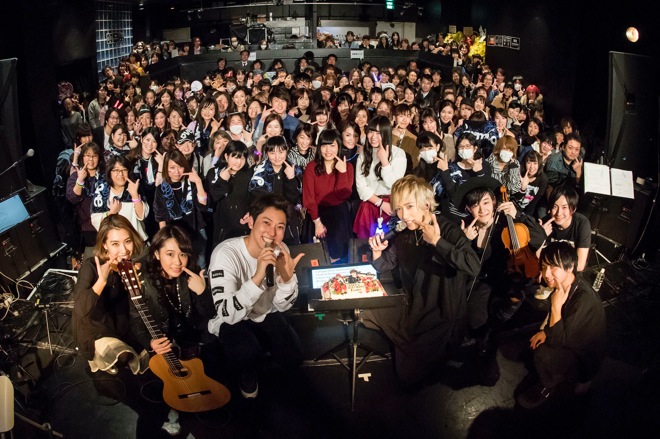 アンコールではFümiが1曲目を歌い出そうとすると、ここでサプライズ。バンドが「Happy Birthday to you」の演奏を始め、ゲストの“ないとー”が、Fümiが大きくイラストされたケーキを持って再びステージへ。Fümiは驚きながらも、その表情は喜びに溢れていた。