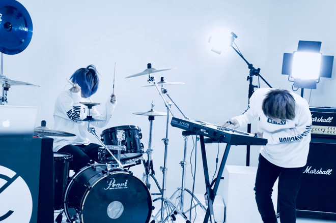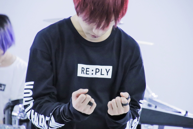 撮影衣装はRe:plyツアーグッズにもなっているWEIGH ANCHORロンTを着用したのですが、腕の袖がお洒落に長くて正直、めちゃくちゃドラムが叩きにくくて焦っていました(笑)
