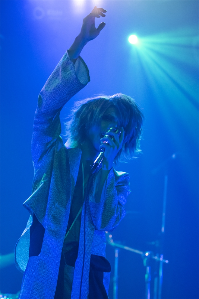 メンバーがまだステージ上に現れていないSEの段階で、観客からは大きな拍手が。そしてゆっくりとお立ち台にのぼった郁磨(Vo)が優しい微笑みを見せた…と思った瞬間「僕の独裁的教育思想反論の歌」でフロアにはいきなりモッシュの渦が生まれた。1曲目にして既にこの吸引力だ。展開の多い複雑な楽曲でも安定感のある楽器陣のプレイに、優雅に腰をくねらせながらも力強く歌う郁磨。と思えば「pupa」でラップを繰り出したり、スラップベースが気持ちいい「S.N.S」でフロアを踊らせたりと、多彩な表情を魅せつける。