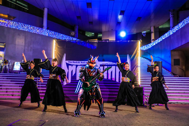 大阪、京都に続いて東京・お台場のダイバーシティ東京で行なわれた12月26日のストリートライブでは、ギター好きからロック好き、サイボーグや特撮好きまで多数のファンが見守る中で全6曲を披露。実物大のユニコーンガンダムが目の前に立つロケーションということで『機動戦士ガンダムUC』のメインテーマ「UNICORN」もプレイし、オーディエンスを大いに沸かせた。