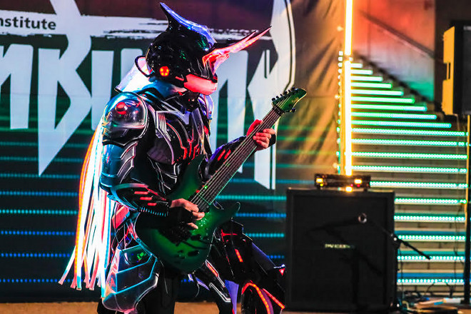 全身を特殊装甲でアーマードされたEdiee Ironbunnyは、デジタルミュージック勢力の台頭でロックミュージックが衰退の一途をたどる未来の世界から、歴史を変えてロックを守るべく現代に降り立ったというハードロックギタリストだ。