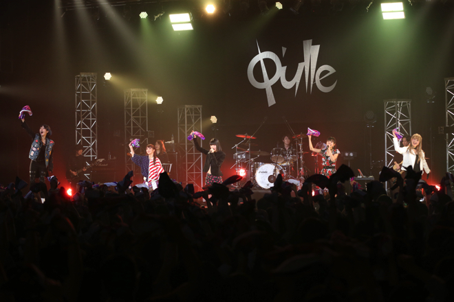 その後、まなこのアコースティックギタースタイルで披露した「OVER」から、アルバム収録の新曲「ひとり」とバラードナンバーが続き、「ナツシルベ」では会場内でタオルを振り回しモッシュが起こるという大盛り上がりに。Q’ulleのデビュー曲「mic check one two」で本編は幕を閉じた。アンコール1曲目ではメジャー1stシングル「DON’T STOP」を披露。続くMCではメンバーひとりひとりがファンへ感謝の気持ちを話し、未来へ必ず繋げるという意味を込め「TASUKI」を最後に披露した。