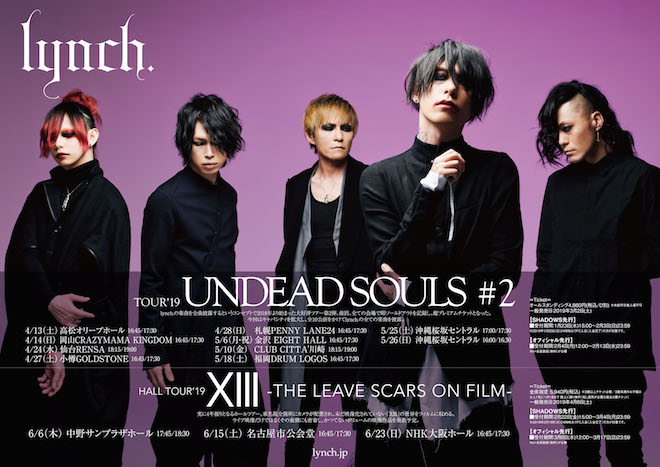 1本目は、4月から開催するTOUR’19<UNDEAD SOULS #2>。lynch.の楽曲を全曲披露するというコンセプトで、2018年より始まったツアーの第2弾。前回は、すべての会場で即ソールドアウトを記録し、超プレミアムチケットとなった。今回キャパシティを拡大し、全10公演をかけてlynch.のすべての楽曲を披露する。