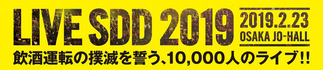 <LIVE SDD>は飲酒運転防止プロジェクト「SDD~STOP! DRUNK DRIVING PROJECT」の中心となるライブイベントで、2019年はプロジェクトリーダーのスターダスト☆レビュー、TRFをはじめ、大黒摩季、Skoop On Somebody、ゆず、家入レオ、超特急、chay、ハジ→、FANTASTICS from EXILE TRIBE、ダンサーの大前光市らが大阪城ホールに集結する。