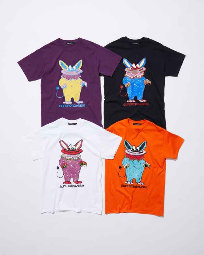 8人組多国籍バンド・スーパーオーガニズムとUNDERCOVERのコラボレーションアイテムが、スーパーオーガニズムのジャパンツアー初日1月19日(土)よりツアー会場およびUNDERCOVER一部店舗にて限定発売される。
