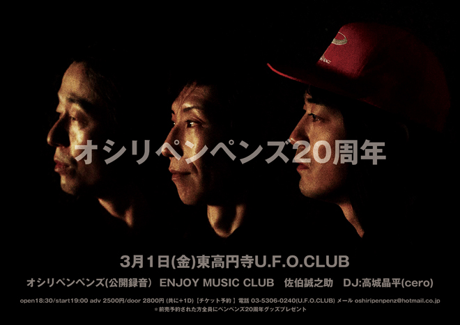 当日は、公開録音を実施するというオシリペンペンズの他に、ENJOY MUSIC CLUB、佐伯誠之助が登場する。また、DJとしてceroの高城晶平が出演することも発表されている。