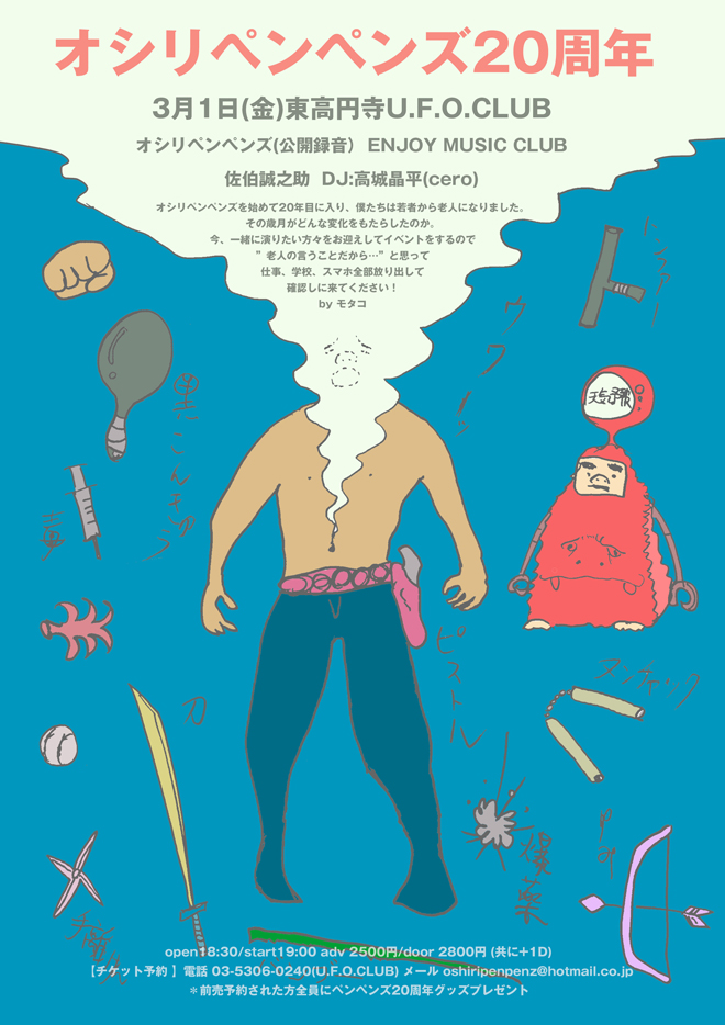 オシリペンペンズが、2019年3月1日(金)に東高円寺U.F.O.CLUBにてイベント<オシリペンペンズ20周年>を開催する。