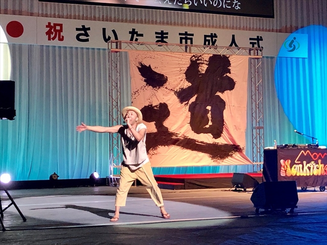 「一個一個積み重ねて夢や願いを叶えていってほしいです。皆さんおめでとう」と1万人以上の新成人を前にMCで話したモン吉。彼にとってもさいたまスーパーアリーナは忘れられない地でもあった。FUNKY MONKEY BABYSとして最後のアリーナツアーのファイナル公演がさいたまスーパーアリーナなのだ。思い出の地に再びステージにたったモン吉からはシンプルながら感情のはいった彼らしいコメントを残し、FUNKY MONKEY BABYSの楽曲を含めて計3曲を熱唱し、新成人へ歌とともにお祝いの言葉を述べた。