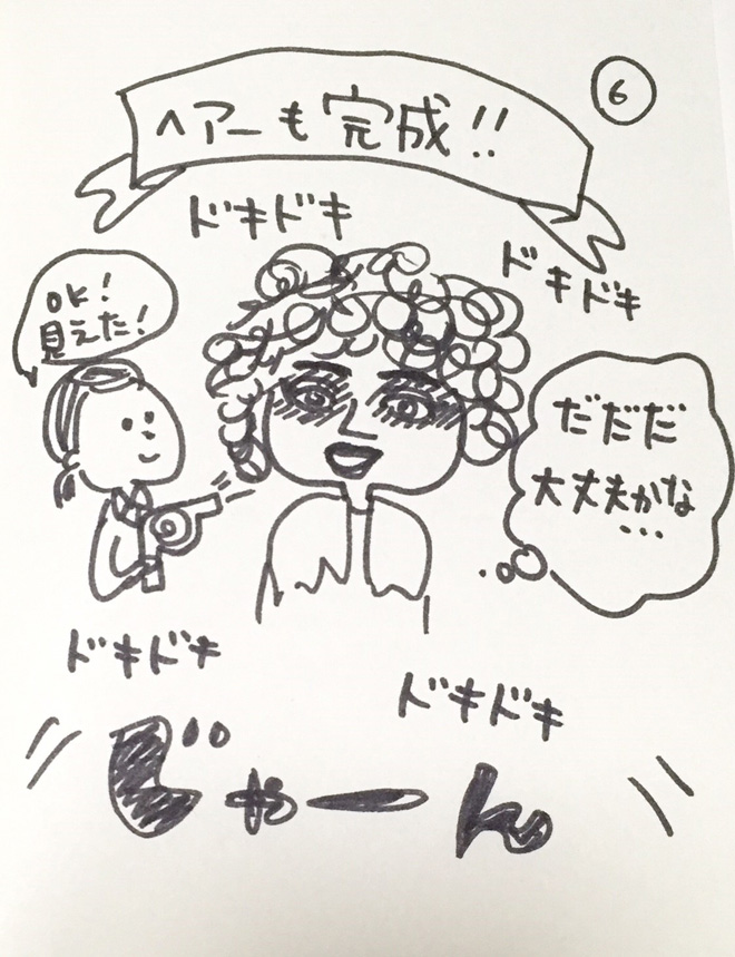 ・続いてヘアはグルグル巻きになり完成され不安はつのっていた