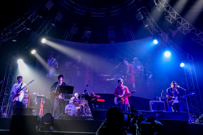 中盤には、360°ファンに囲まれた中央ステージに移動し、立て続けにアッパーチューンを披露。そして、待ちに待った共演がこの記念すべきライブで実現した。2017年にリリースしたシングル「灯り」で初コラボした秦 基博との共演だ。