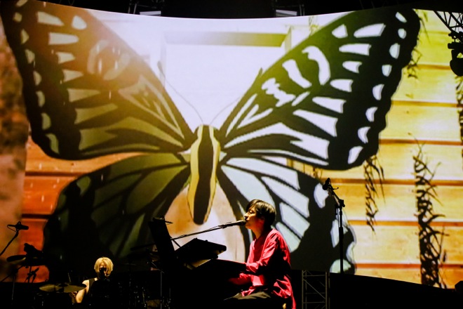 「楽しんでますかー?」とメンバーと並んで登場した秦が呼びかけると会場が拍手に包まれた。ホリエは、「一昨年、一緒に「灯り」という曲を作りました。結構な時を経て、冬の名曲入りしてますよ。初披露します!」など、楽曲制作から今に至るエピソードをMCで語った後、コラボによる「灯り」のパフォーマンスへ。これまで両アーティストが揃って楽曲をパフォーマンスしたことはなく、約2年の時を経て、ここで初めて実現したこととなった。