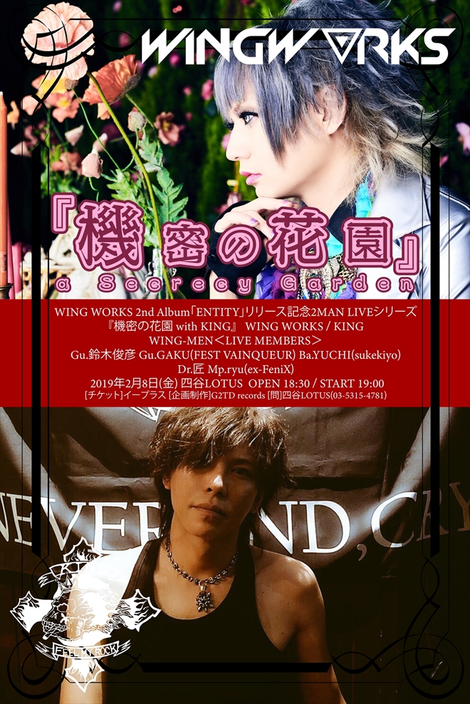 WING WORKSが2月3日にリリースする2ndアルバム『ENTITY』の発売を記念して開催するツーマンシリーズ<機密の花園>。