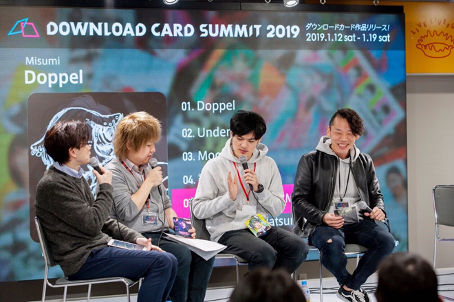 ダウンロードカードとは、カードの裏面に記載されたURLやQRコードにアクセスすることで、スマホやPCにデジタルコンテンツをダウンロードできる、カード型の音楽メディアの総称。<DOWNLOAD CARD SUMMIT>は、このダウンロードカードの認知拡大を目的に、「M∞CARD」と「SONOCA」という仕様の異なるダウンロードカードを提供する、ダイキサウンド株式会社とクリプトン・フューチャー・メディア株式会社がタッグを組み、実現したイベントである。