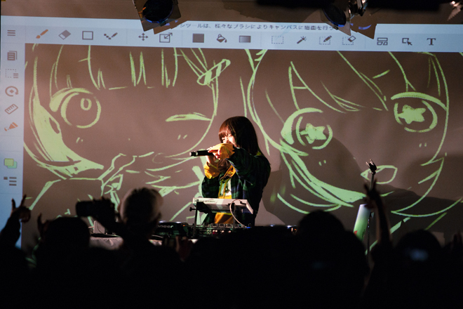 サイン会を挟んで行われた二部には、ゲーム音楽界でも話題の女性シンガーソングライター・TORIENAが登場し、DJとヴォーカルでフロアを温める。その後は、“Future Bass” に影響を受けたポップサウンドを展開するレーベル「未来茶レコード」のショーケースが展開。この日が記念すべき初ライブとなったNeko Hackerは、ましろ、くいしんぼあかちゃんを迎え、Seraの奏でるギターサウンドとスイートヴォイスで魅了。Yunomiとともにレーベルを主宰するYUC’eはAireとコラボし、新曲「コットンキャンディ・シープ・ナイト」を披露した。ちなみに、出演を予定していたKOTONOHOUSEは、残念ながらインフルエンザで欠席。トリを務めたYunomiは、やのあんなを迎えたKOTONOHOUSEの「プリズム」をプレイしてエールを送り、その後TORIENA、日南結里を迎えてYunomi自身の新曲「ゲームオーバー feat.TORIENA」、「白猫海賊船 feat.日南結里」などを披露した。サイリウムを掲げ、曲を口ずさむ熱狂的なファンの姿も印象的。日本が誇る注目の音楽ジャンル「Kawaii Future Bass」の世界感を存分に堪能でき、同ジャンルの人気の高さを垣間見ることができた。