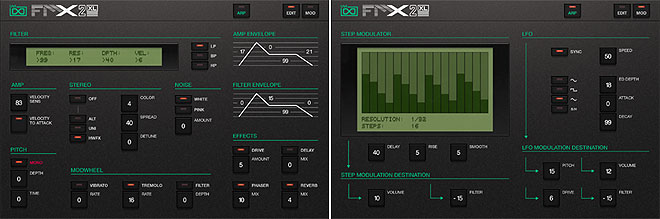 初めて8オペレーターを搭載したFMシンセサイザー、FVX-1のサウンドをベースにしたモデル。複雑で味わい深いモジュレーション、ふくよかなユニゾンと内蔵エフェクトの魅力をデュアルレイヤーデザインでさらに引き立たせる。