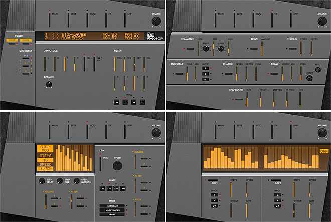 DX21、DS8、V50やTQ5などを含む、4オペレーターFMシンセサウンドをベースにした音源。定番の80’sサウンド、実機の内蔵エフェクトや特別なユニゾンモードが魅力。
