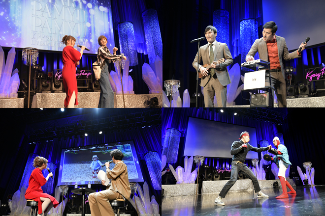 VTRコーナーでは、きゃりーのお部屋を公開! 続く常識クイズでは、きゃりーの珍回答に会場からは大きな笑い声が上がった。トークパートでは真っ赤なワンピースに着替えたきゃりーがMCのジグザグジギーの池田と共に登場。きゃりーの小さな頃の写真を見ながら思い出を振り返ったり、SCANDAL、OKAMOTO’S、Perfumeからのお祝いメッセージゲストを鑑賞したり、質問コーナーでファンと交流をしたりと、アットホームな雰囲気でイベントは進む。ラストは“きゃりーをお祝いし隊”として芸人の夢屋まさる、きつね、クロコップがきゃりーにまつわるネタを披露し、ステージを盛り上げた。