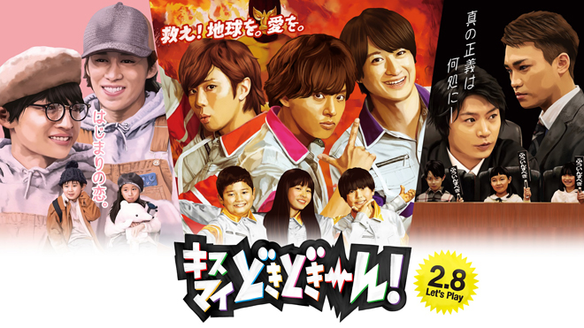 dTVで配信される『キスマイどきどきーん!』はKis-My-Ft2と子どもたちが織り成す笑いあり、涙ありのバラエティ番組。何が起こるかわからない本番組を追求した結果、特報映像もラブストーリー篇・アクション篇・サスペンス篇という3本立て映画さながらのものに仕上がっている。