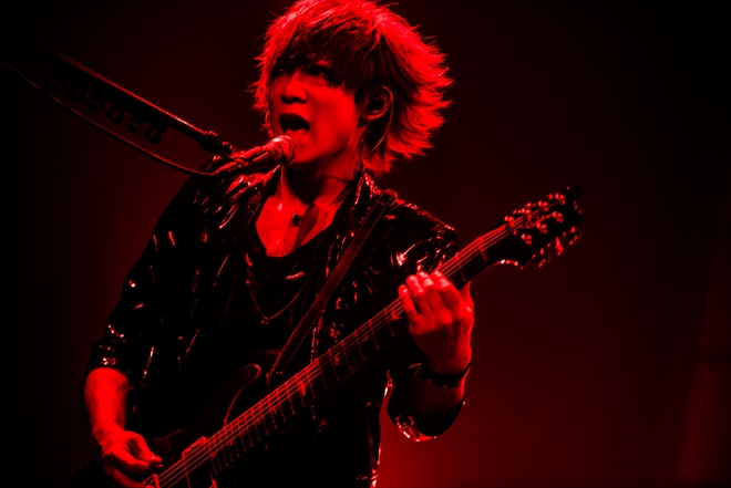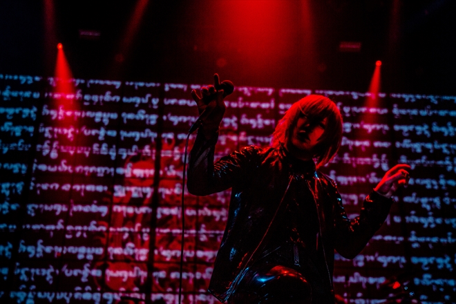 特に良かったのは、ライヴ中盤で披露された「人間失格」と「EROGRO」だ。両曲の間に場面切り替えのためのSEを挟んでいるとはいえ、昔の曲からいきなり最新曲へと移るのはライヴの構成を考えても難しい並びではないだろうか。しかし、彼らはそれをいとも簡単にやり遂げた。宏崇(Dr)の切れ味の良いドラミングが冴えたアッパーな「人間失格」、妖しげなダンスナンバー「EROGRO」と、くるくると雰囲気を変えながらもフロアを一気に引き込んでいく。