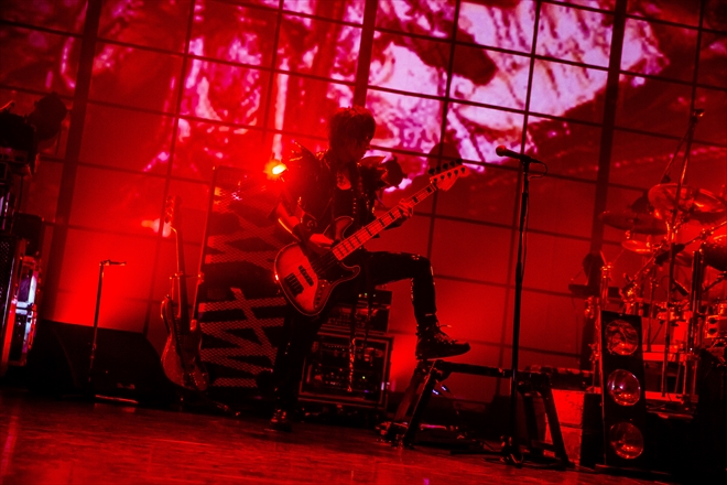 また、「予言」では視覚面にこだわることによって、作品のテーマにもなっていた宗教観が一層強めに出ていた。やはり、広い会場の利点はこうして視覚的に楽曲を膨らませられることだろう。次の「MELT DOWN」も映像を使うことによって違う角度から楽曲を捉えることができた。余談だが、この曲が演奏されているとき、間奏部分のところでステージに救いを求めるように手を伸ばしていた指定女子が目に付いた。きっと色々な想いがあってこの曲を聴いていたに違いない。ちぎれるぐらい伸ばしたその手の真意は本人にしかわからないが、この曲に限らずR指定の楽曲には感情移入できる曲が多い。