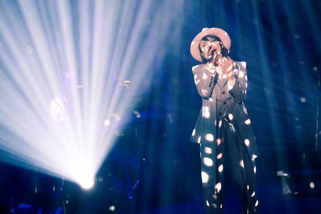 今回のショーの演奏は、バンドにストリングスを加えた編成で、ステージセットはシュールレアリズムのトロンプ・ルイユ(騙し絵、トリックアート)で非現実的な世界を表現。衣装にはゴールドのラメをあしらったベルベット素材のブラックのコートドレス、真紅のワンショルダーのドレス、マニッシュなスーツが用意され、洗練された大人の女性のスタイルを披露した。