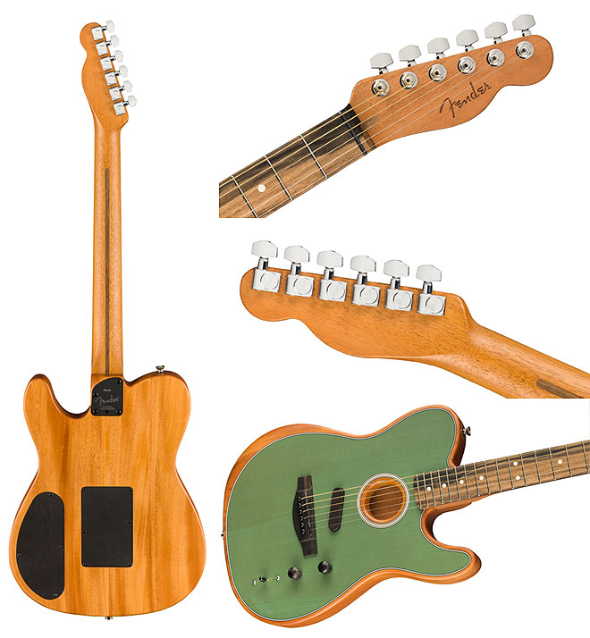 「American Acoustasonic Telecaster」は、「ACOUSTIC. ELECTRIC. そこにある、すべて。」という新しいコンセプトで、これまでにない音楽を創造するために開発されたモデル。アコースティックギターのボディシェイプや素材の違いによって得られる多彩なサウンドヴァリエーション、そして大胆なエレクトリックギターのサウンド、さらにはその両方をブレンドさせたまったく新しいサウンドまで、今までの「ギター」という楽器の枠を超えた音づくりが可能だ。
