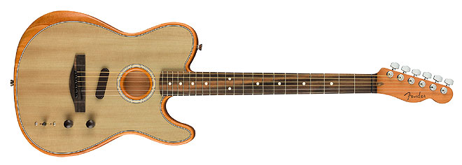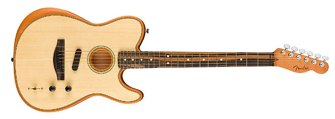 アコースティックギターとエレキギターのトーンを奏でられるフェンダーの次世代ギターの新機軸、1月に米アナハイムで開催されたNAMM Showで大きな注目を集めた「American Acoustasonic Telecaster」の国内販売が開始された。