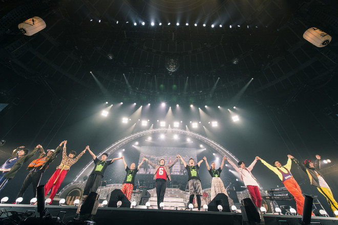 会場はチケット完売の満員御礼。場内が暗転し、今回のツアーでの定番映像“色黒ホモ・サピエンス(ロバート・秋山竜次)が“稲穂の神様”に扮した映像から、オープニング曲「SEGODON」でライブが幕を開けると会場は一気に総立ちに。これまでのツアーセット同様、最新アルバム『ムキシ』からのナンバーを中心に、1stアルバムからの「Let’s 忍者」や2ndアルバムからのバリバリのディスコチューン「ペリーダンシング」を届けていく。続く「SHIKIBU」では劇団シキブこと俳優の八嶋智人が登場してステージを縦横無尽に駆け巡り盛大に盛り上げ、「GET A NOTE」では会場一体となってタオルを振り回す圧巻の光景をつくりだした。