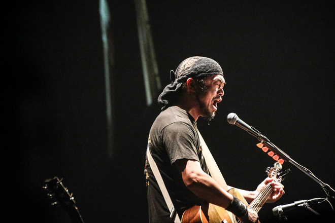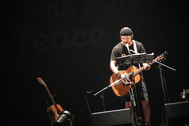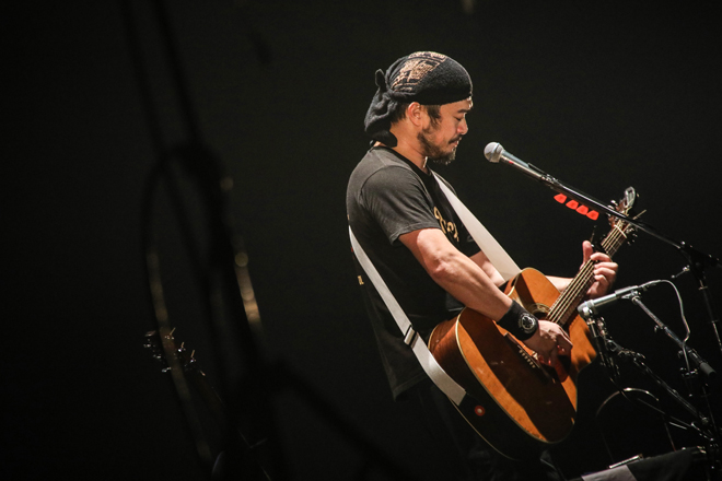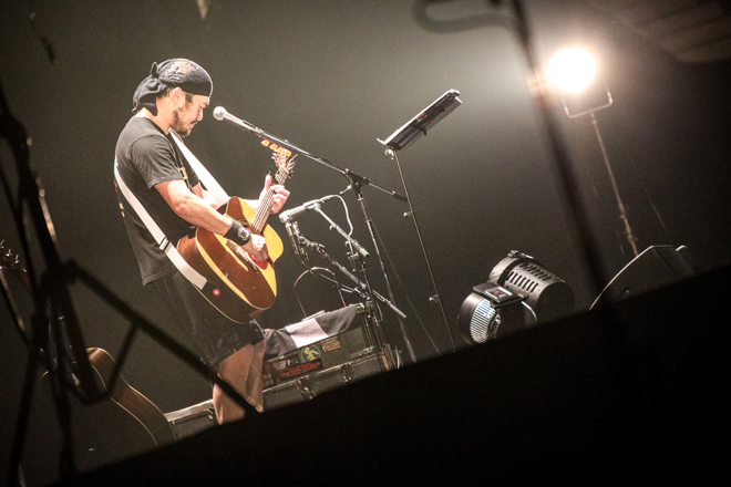 最新アルバム『GOOD LUCK TRACK』から、TVドラマ『バイプレイヤーズ』主題歌「Forever Young」、情けなくも切ないロスト・ラブソング「I miss you…」に加え、吉田拓郎のカバー「落陽」、野狐禅時代のレパートリー「カモメ」などを交えてライブは進む。「一等賞」では手拍子が沸き起こるなど、観客も乗ってきた。「オーバー・ザ・オーバー」などアスリートをイメージした応援歌、歌うたいがステージに臨む繊細な心境を綴る「マスター、ポーグスかけてくれ」など、歌詞に込めた多様なドラマのおかげで緊張感が途切れない。