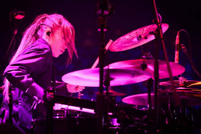 アカペラで歌い出された「Hurry Xmas」、そして、「Driver’s High」「DIVE TO BLUE」といった疾走感の強いナンバーを経て、ステージは中盤へと向かう。その中で凄まじいインパクトを放ったのが、4人がギターを弾き順番にヴォーカルを取った「trick」だ。ミュージシャンとして一人ひとりが強烈な個性を放ち自己主張する。そして、そのぶつかり合いと融合が、激しい閃光と地熱を巻き起こす。ロックバンドとしての圧倒的リアリティをこれでもか、と見せつける彼らのライヴパフォーマンス。ステージが溶けてしまう程の熱さだった。