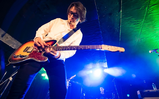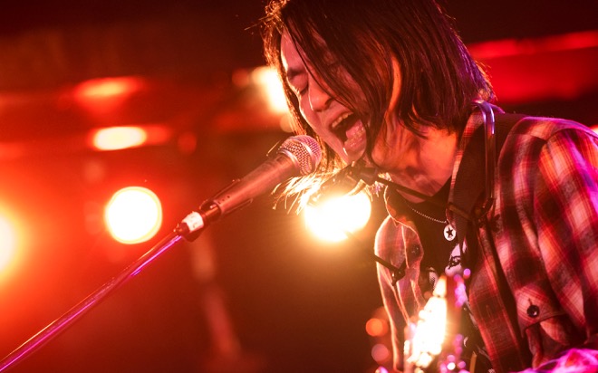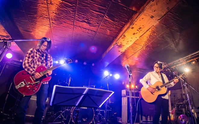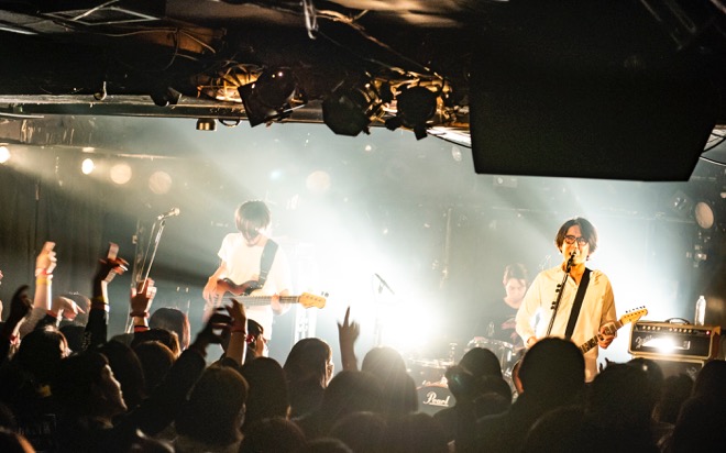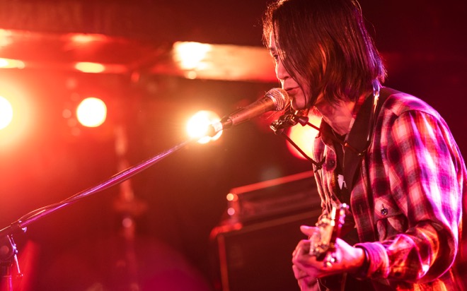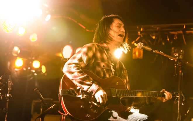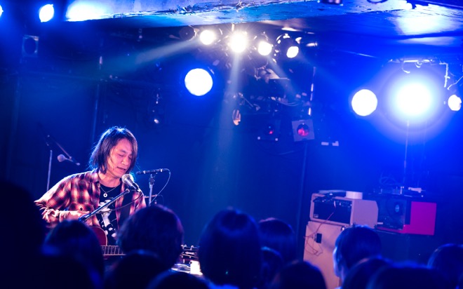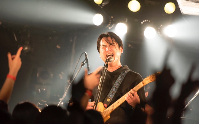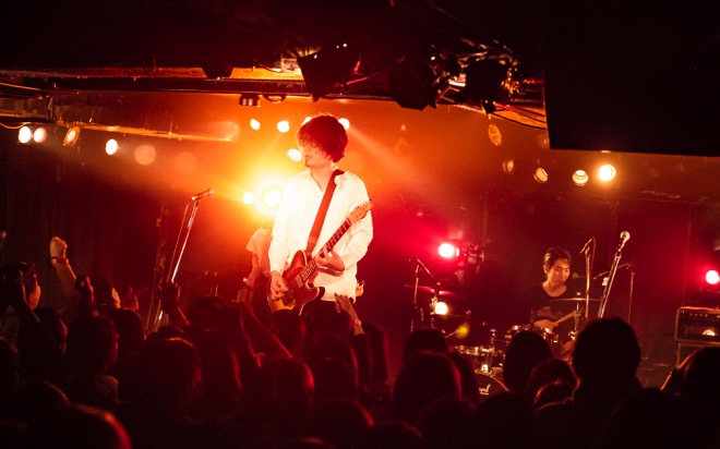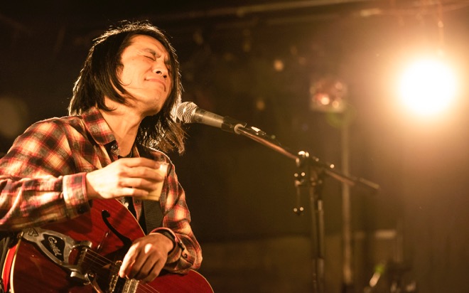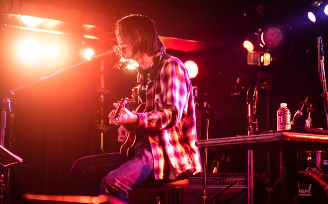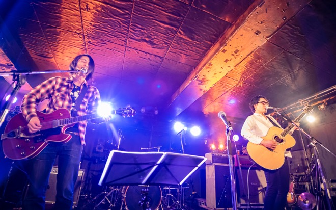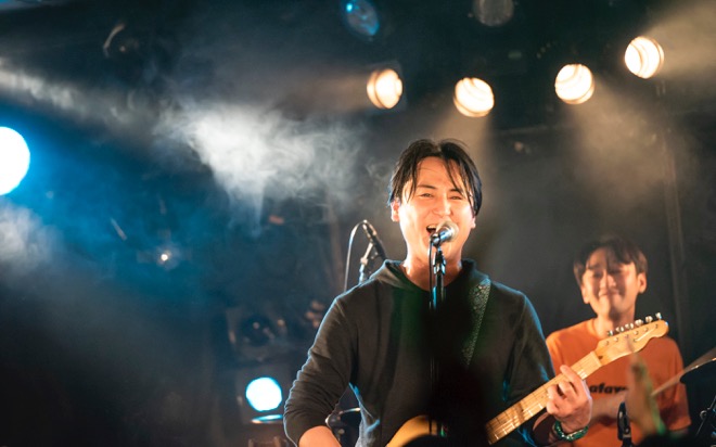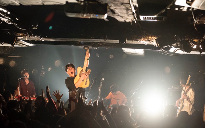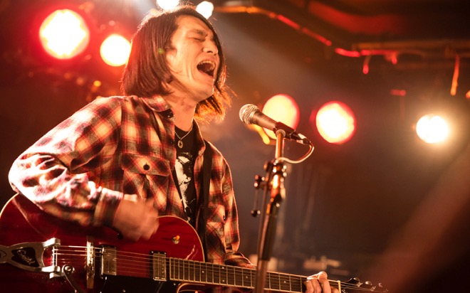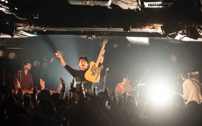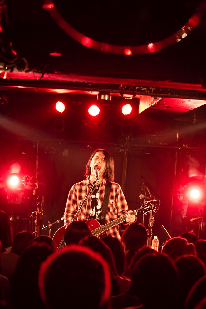 「渡會くんのギャラから引いといてください」と笑いを取ったところで、酔いどれのブルース「高架下の幽霊」を披露。エレキギターとハーモニカによる哀愁を帯びたサウンドと、しゃがれた百々の歌声で紡がれる物語に、瞬く間に引き込まれていく。すがるように繰り返される“ぼくのことを好きにして”というフレーズと、柔らかなアルペジオが胸を締めつけた「すきにして」でもブルースマンとしての手腕を見せつけた。
