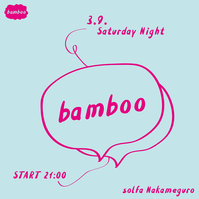 <bamboo>は、小休止を経た2018年に中目黒solfaをベースにリスタート。再開後の第1回目にはCMT、Hattoriらを、そして開催となった第2回にはデトロイトよりFit Siegel(Fit Sound)、COMPUMA、KABUTOを招聘、さらに内容が色濃く映し出されるパーティへと進化を遂げている。