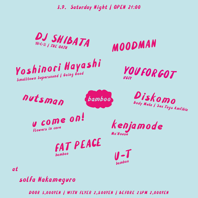 MOODMAN、YOUFORGOTらが参加する<bamboo>が中目黒solfaにて開催