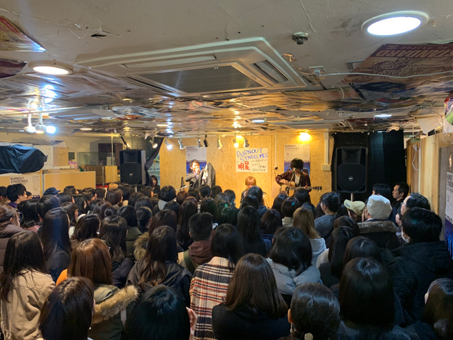 メンバーの熊谷和海、石川大裕、廣瀬拓哉から最前列のファンまでは約1メートルという贅沢な距離。「世界を回せ」「花一匁」「吾輩は猫である」「FLY HIGH!!」「ナミタチヌ」がアコースティックセットで披露されたほか、石川のボイスパーカッションと廣瀬のカホンによるビート対決なども盛り込んだライブでファンを楽しませた。