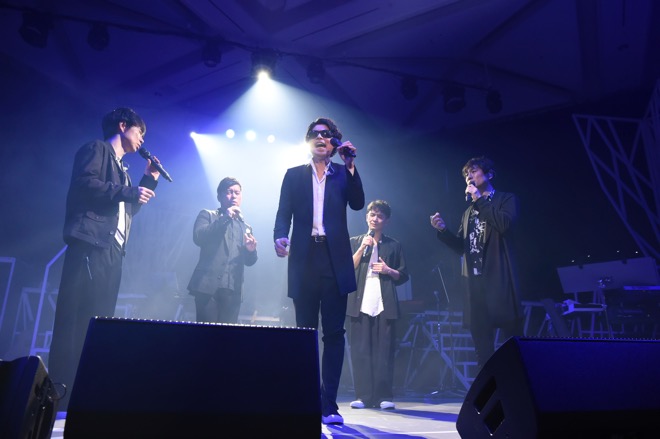 中盤のアコースティックコーナーでは、最新アルバム収録曲「Goodbye」、ソプラノサックスが奏でるメロディーと爽やかなアレンジが施された「約束の季節」、映画『母さんがどんなに僕を嫌いでも』主題歌「Seven Seas Journey」を披露。また、アルバムのテーマカラーでもあるピンクのスーツに衣装を替えた5人は、「Hiding Place」「NOTHING」「Right by you」「アンジュナ」とメロウなナンバーを畳み掛けた。