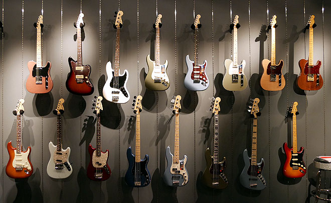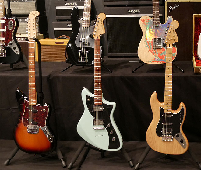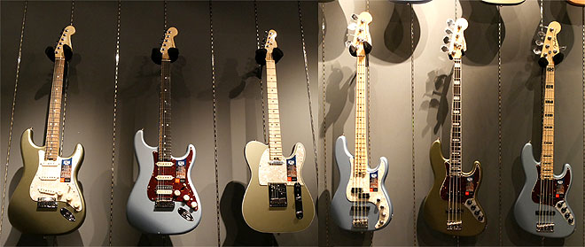▲数多くのモデルをラインナップするAmerican Performer。写真は左からTelecaster、Jazzmaster、Jazz Bass。