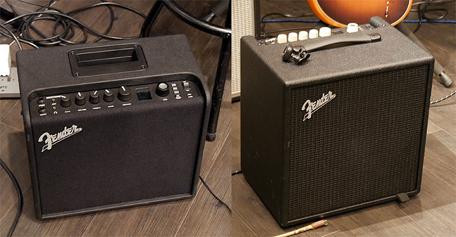 「Bassbreaker 30R」はホットなハイゲインの歪みとリバーブを併せ持った真空管アンプ。「Rumble 800HD」は、気軽に持ち運べる大出力アンプ。シンプル操作の「Mustang LT25」、「Rumble LT25」は、家庭での練習にぴったりなモデルだ。