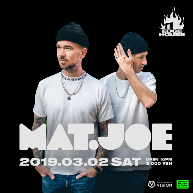 WEEK 5となる今回は、ベルリンを拠点に活躍するデュオ Mat.Joeを迎える。老舗レーベル“Strictly Rhytm”からリリースしたソニー・フォデラとのリミックス「Take It Easy」がBeatportの総合チャート1位のメガヒットを記録し、ベルリンを拠点に活躍するDJデュオ。最近ではToolroom、Hot Creations、Solaといったレーベルからリリースを続けており、太いベースと中毒性の高いリズムループに定評があるのはご存知の通り。ヨーロッパ直輸入の現在進行形のモダンハウスを体現するMat.Joeのプレイを味わっていただきたい。