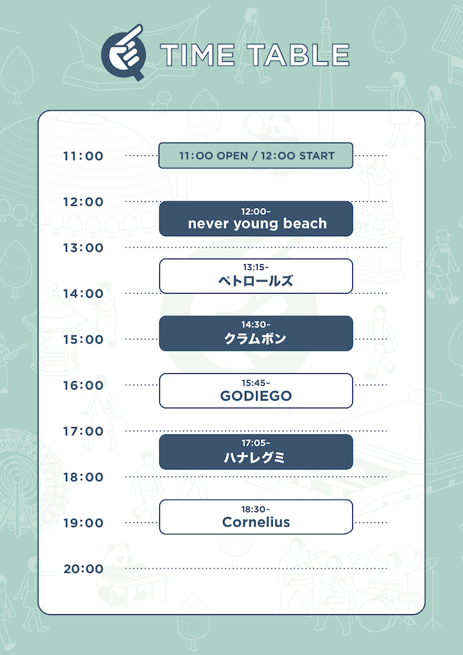 出演者:GODIEGO/Cornelius/クラムボン/ハナレグミ/ペトロールズ/never young beach