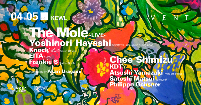 The Moleが今回出演する<KEWL>は、この1年間にVakula、Hunee、Tom Trago、Sochi Terada、Shinichiro Yokota、Legoweltなどの素晴らしいアクトを招聘したパーティを成功させ、東京のシーンに新たなムーヴメントを提示してきた。今回はSmalltown Supersoundからも作品をリリースし国内外で高い評価を獲得している異才Yoshinori Hayashi、そして<KEWL>のレジデントであるKnock、EITA、Frankie$、さらにはRoom2へのゲストアクトとして今年<Dekmantel Selectors>への出演も決定しているChee Shimizuが出演し、東京屈指のアーティストたちがThe Moleとともに春の東京をカラフルに彩る。