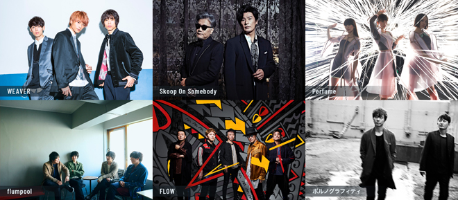 出演:WEAVER、Skoop On Somebody、Perfume、flumpool、FLOW、ポルノグラフィティ and more (五十音順)