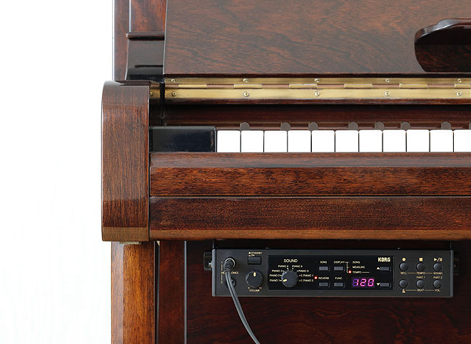 自宅のピアノをヘッドホンでいつでも気軽に演奏できるピアノに変身させるアップライト・ピアノ用消音ピアノ・システム「KHP-2500」がコルグから登場した。