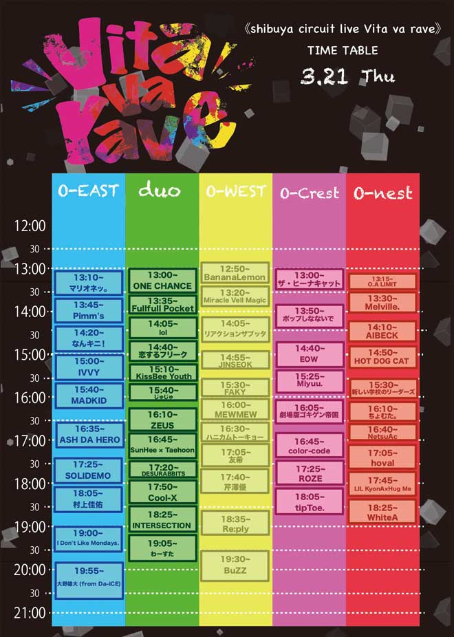 <shibuya circuit live Vita va rave>、タイムテーブル発表