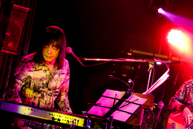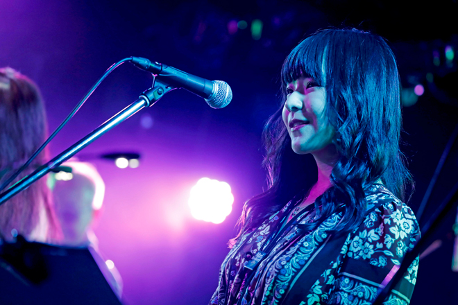 40年振りのオリジナル・アルバム『Mari & Bux Bunny シーズン2』に参加したのは、1974年の結成メンバーである金子マリ(Vo)、鳴瀬喜博(B)、難波弘之(Key)に、新たに土屋昌巳(G)、古田たかし(Dr)、玲里(Cho)、開発千恵(Cho)を加えた7人。豊富なキャリア、スキル、センスを備えた最高級ミュージシャンをずらりと揃えたライブは、新作から「The Haze And Tide」「幸せの足音」などを立て続けに披露し、序盤からヒート・アップしてゆく。