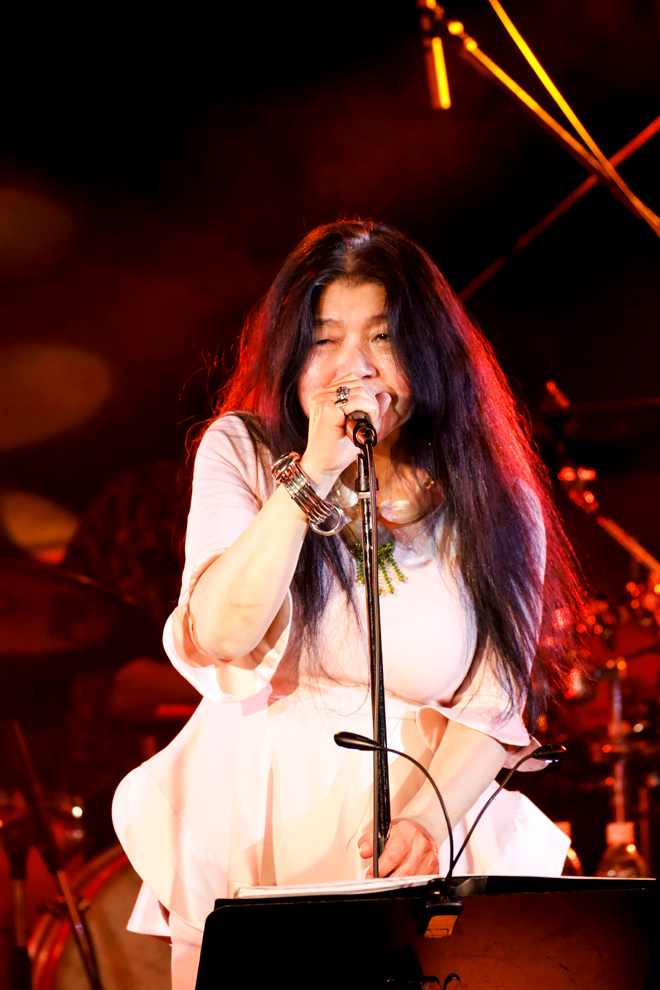 鳴瀬はトレードマークの強烈なスラップ奏法で観客を湧かせ、MCでは軽妙なトークで笑いを誘う盛り上げ役。難波は76年のファースト・アルバムで使ったというキーボードを操り、変幻自在の音色で楽曲をカラフルに染め上げる。しなやかで堅実な古田のドラムと、見た目もプレーも艶やかでグラマラスな土屋の存在感も頼もしい。若い二人の女性コーラスは、息の合ったハーモニーと爽やかな笑顔でステージを輝かせる。そして金子マリの、全身を使ってソウルを震わせる圧巻の歌声。名手名演、贅沢としか言いようのない時間だ。