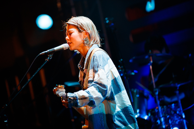 初のワンマンライブが4月12日に開催される話をした後は、彼女の声の魅力が最も引き出されるミディアムテンポのエレクトロ・ポップ「Stereo」と、アニメ『からくりサーカス』のED曲として書き下ろした「マリオネット」へ。最後は観客がクラップやジャンプをしながら参加した、背中を押してくれるアッパーなナンバー「Rolling Rolling」で会場を沸かせた。