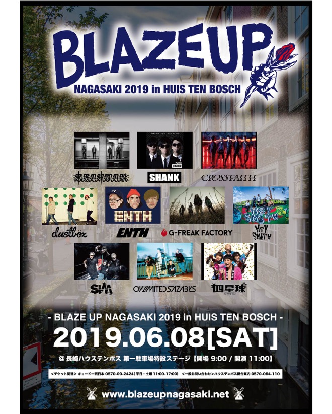 SHANK主催野外イベント<BLAZE UP NAGASAKI 2019 in HUIS TEN BOSCH>が6月8日(土)、長崎ハウステンボスにて開催される。同イベントの出演アーティストが追加発表となった。