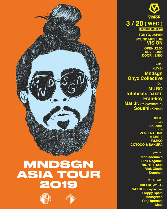 LA発世界最高峰のインディレーベル“Stones Throw”から次世代を担う最注目アーティストMNDSGNが、渋谷Sound Museum Visionにライブセットで登場、さらにNYからOnyx Collectiveも出演が決定した。