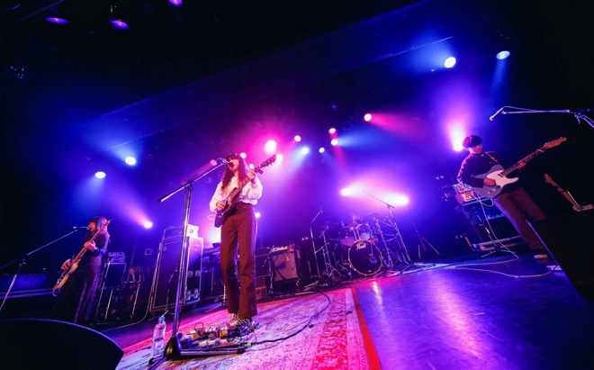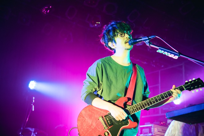 オーディエンスの大きな拍手に迎えられて、まずはHomecomingsのライブがスタート。アルバム『ホームタウン』収録曲「UCLA」にゲストボーカルとしても参加している畳野彩加(Vo)の力強く伸びやかな歌声に、福田穂那美(B)と石田成美(Dr)による時に爽快で時に優しいリズムと美しいコーラスワーク、そしてバンドの黒一点でもある福富優樹のギターが軽快に響く。