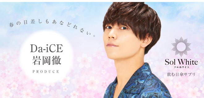 Da-iCEの岩岡徹が飲む日焼け止めサプリメント「Sol White」をプロデュースした。